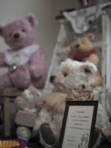 会場はとっても広くて、既に設置を完了させているブースもたくさんで、目移りしながらも展示ポイントへ、会場のほぼ真ん中辺りにそれはありました。ノミネーターであることを係の人に伝え、ベアを設置。ドキドキドキドキ。バッグから真綿にくるんで運んできた、私の大事なFlocke。ポーズを整え、毛並みを整え、写真も撮って、設置完了。彼もなんだか堂々と凛として見えました!離れるのはなんだか心もとない感じでしたが、引換券を頂いたら、設置はそれで終わりです。