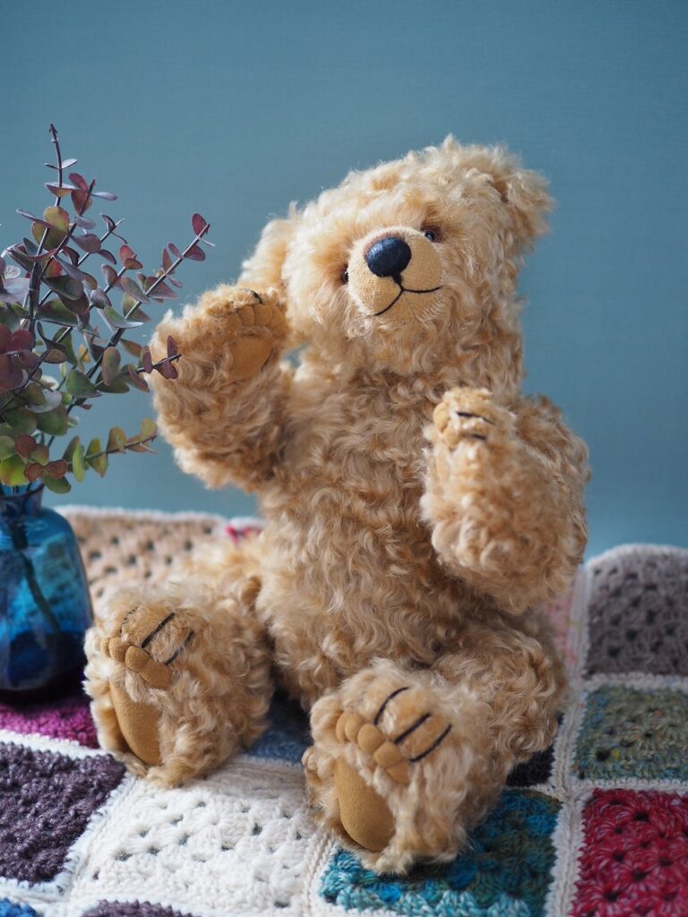 テディベアの一部に着色、蝋(WAX)加工を施しています。水濡れ等による色落ち、色移りにご注意の上、経年劣化等ご理解ください。